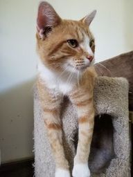 Winchester loves sleeping in the cat tree beds or looking out at the birds. My cat trees are by windows, so my cats can observe any wildlife passing by. The cat trees have balls that dangle from them to entertain my cats. My cats take turns in using the cat trees by the windows. Winchester has a favorite one that he calls his own. He likes chicken, tuna, cat treats, and dry cat food.